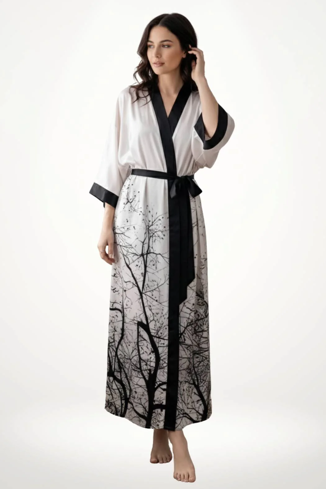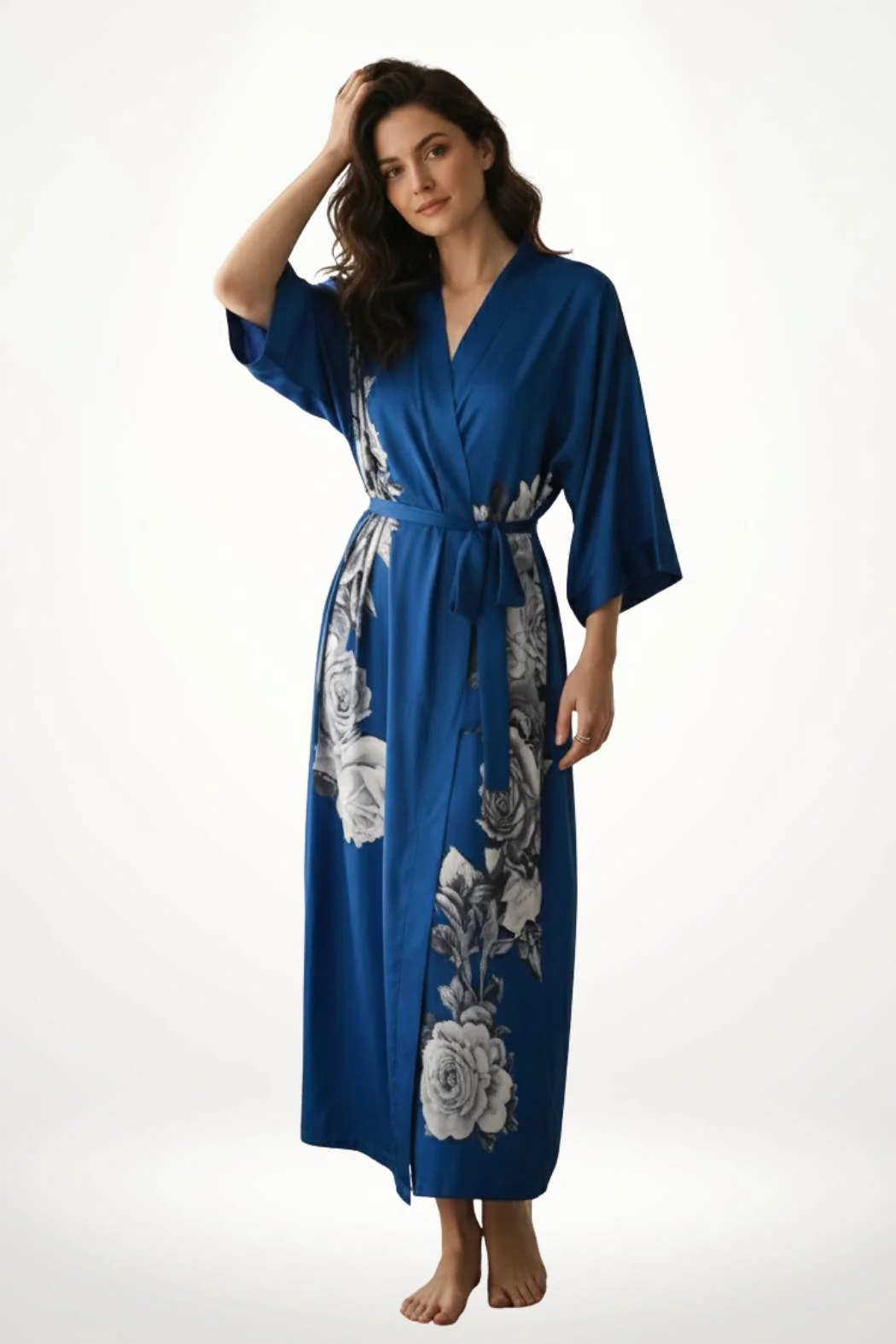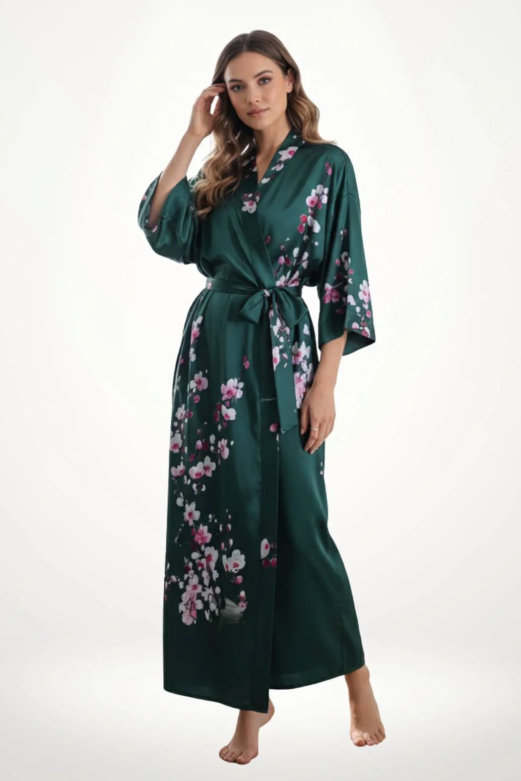• Usage : Idéal pour des moments de détente élégante à la maison ou pour apporter une touche sophistiquée à une tenue d’intérieur, ce kimono long fluide s’adapte à une femme qui aime allier confort et style.